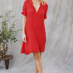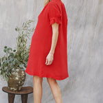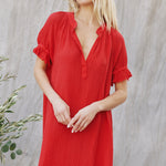 ANTIBES puff sleeve caftan in lightweight gauze - lipstick