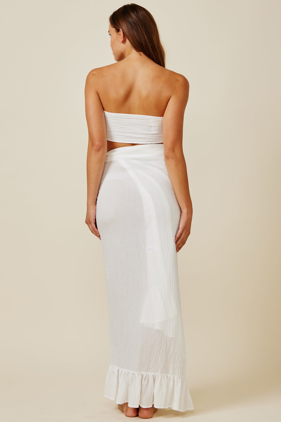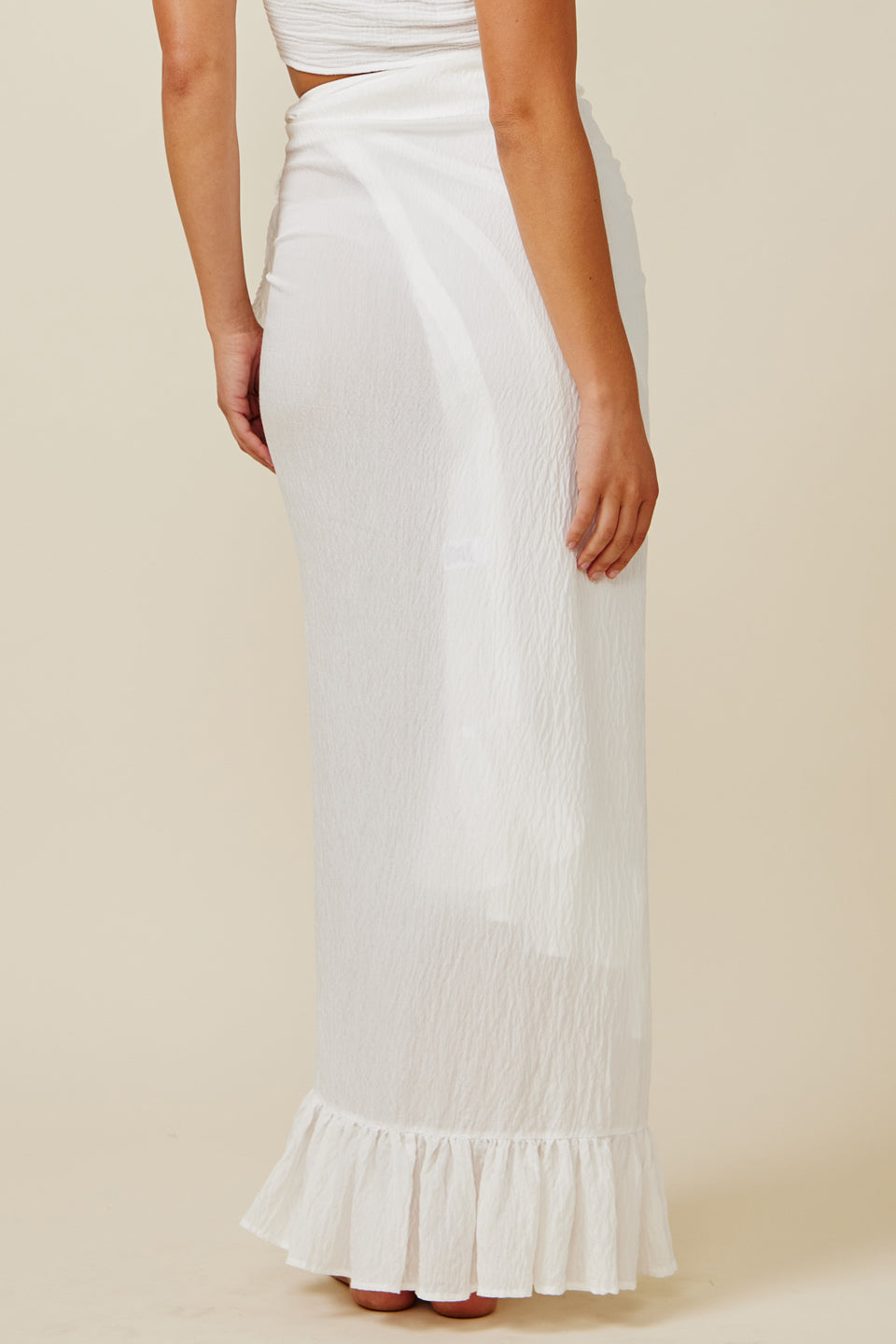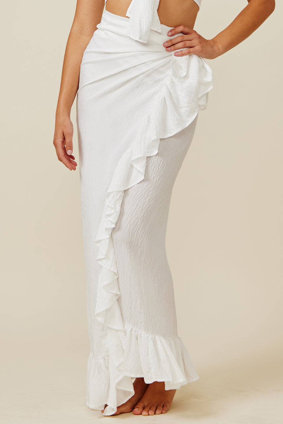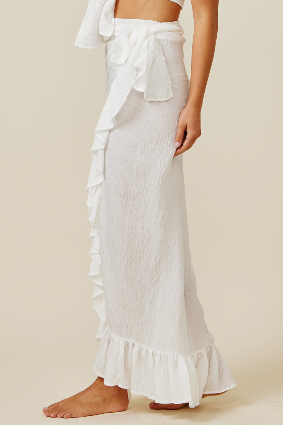 A ruffle pareo wrap skirt in our new "naked" silky blend