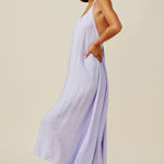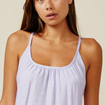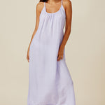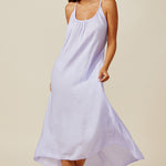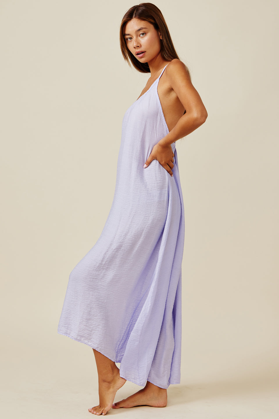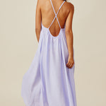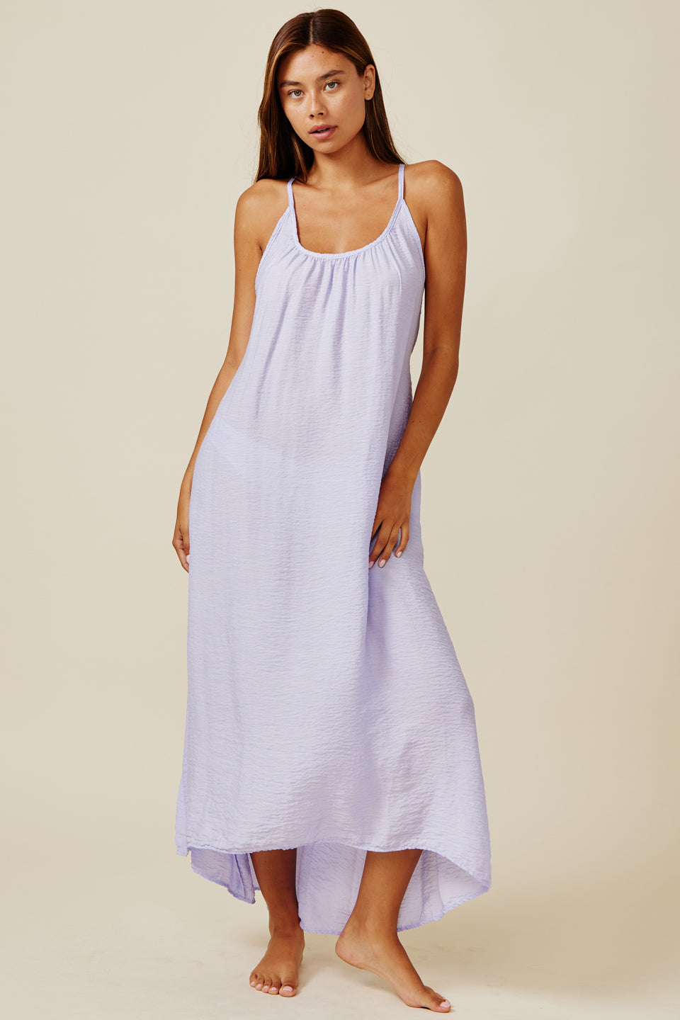 A breezy cross-back gauze cover-up dress in our new "naked" silky blend. Semi-sheer.