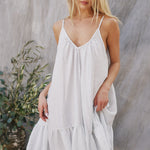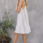 Our best selling mini dress now in our new "naked" silky blend; delicate pleats accent the flared skirt of this drop-waist cover-up. Sleeveless.