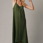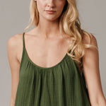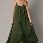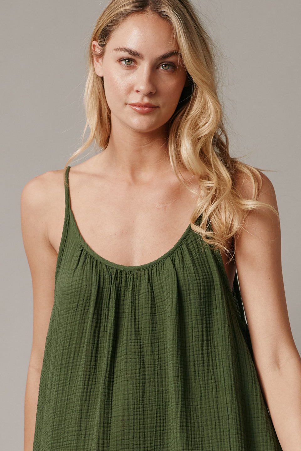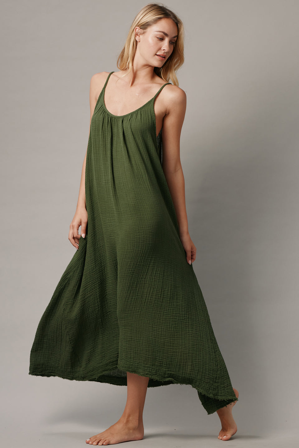 Our best selling maxi in lightweight gauze with a raw edge on the bottom hem. Semi-sheer. Now with adjustable straps.