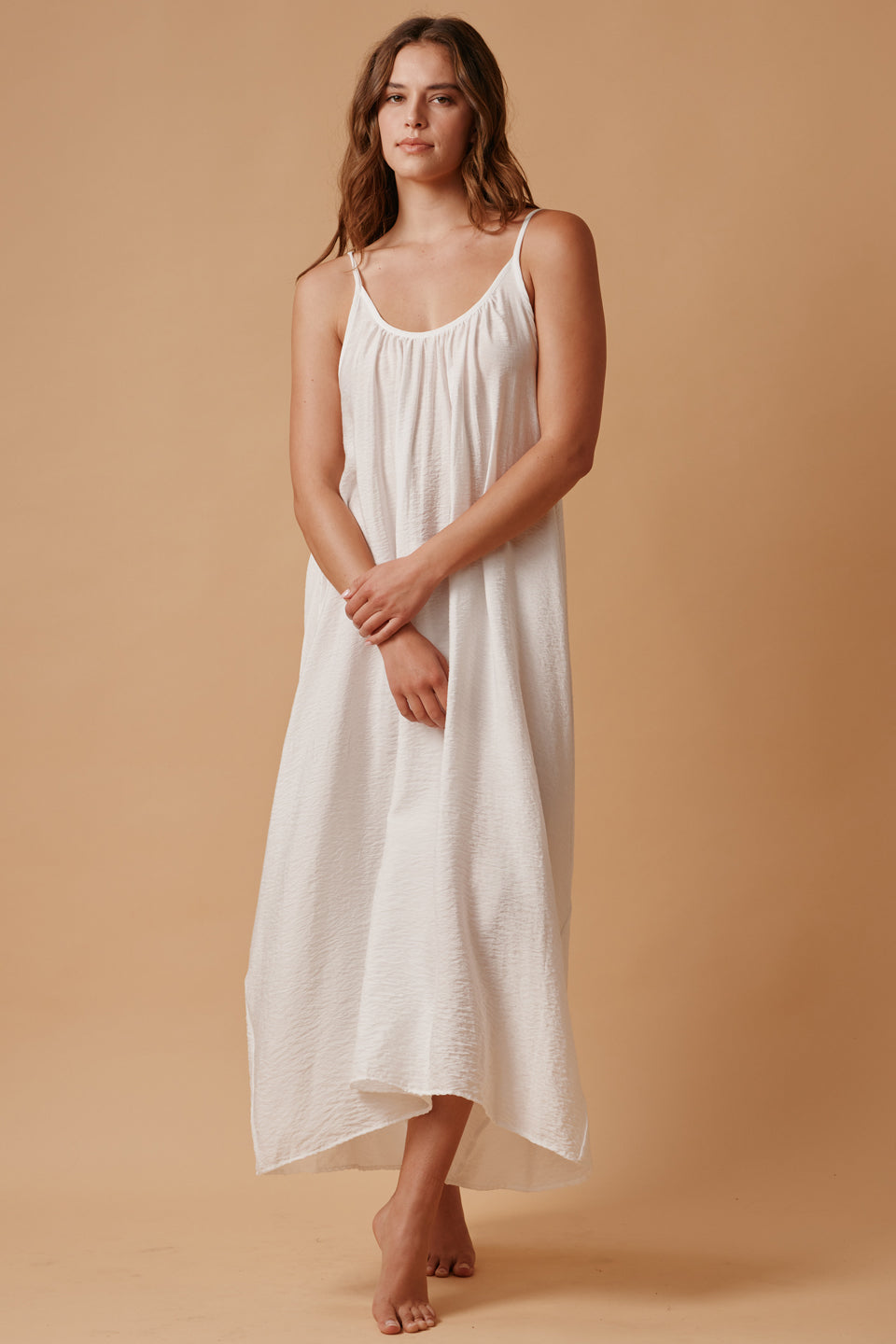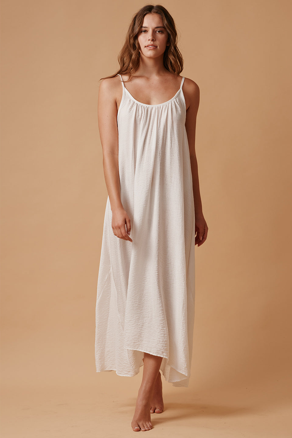 Our best selling maxi now in our new "naked" silky blend. Semi-sheer.