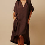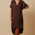 TUNISIA short sleeve caftan in lightweight gauze - chocolate