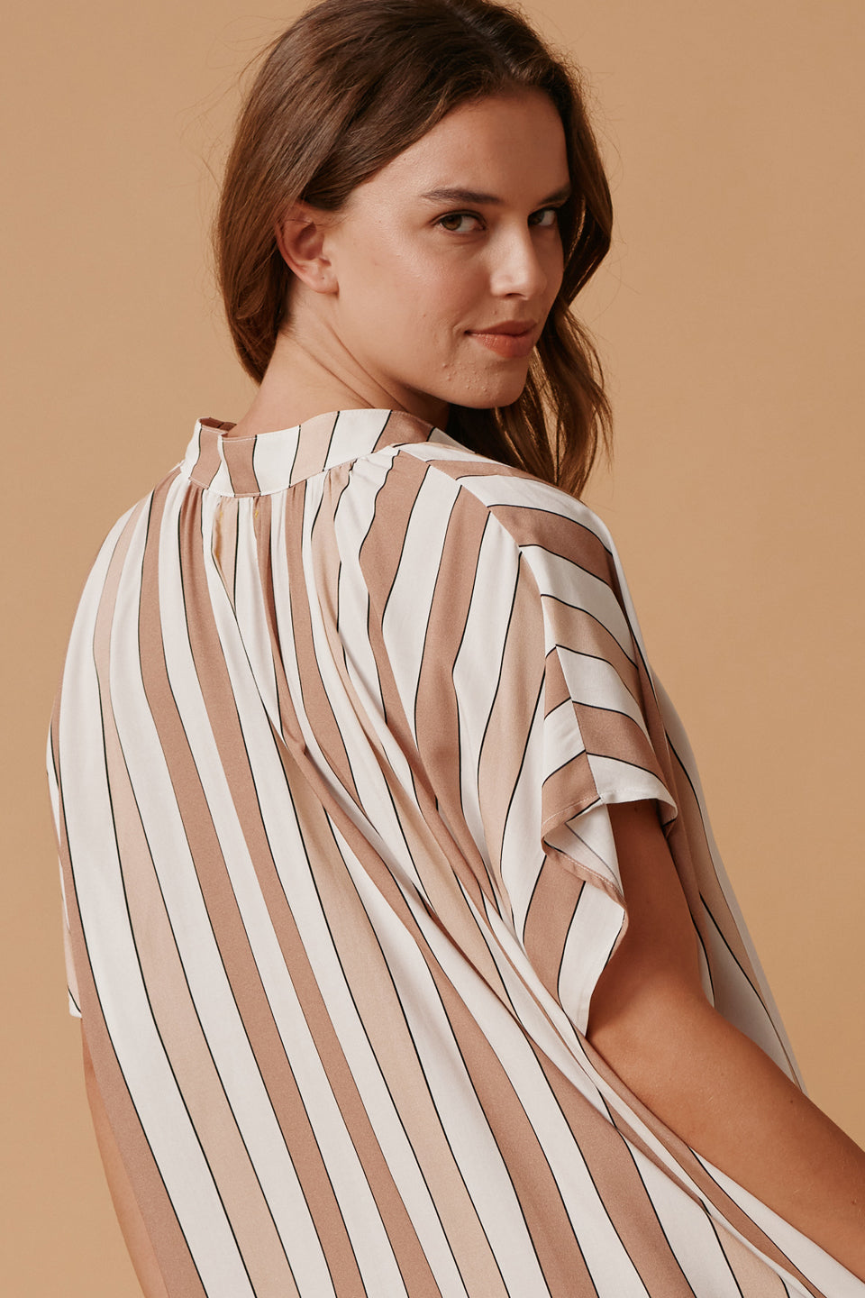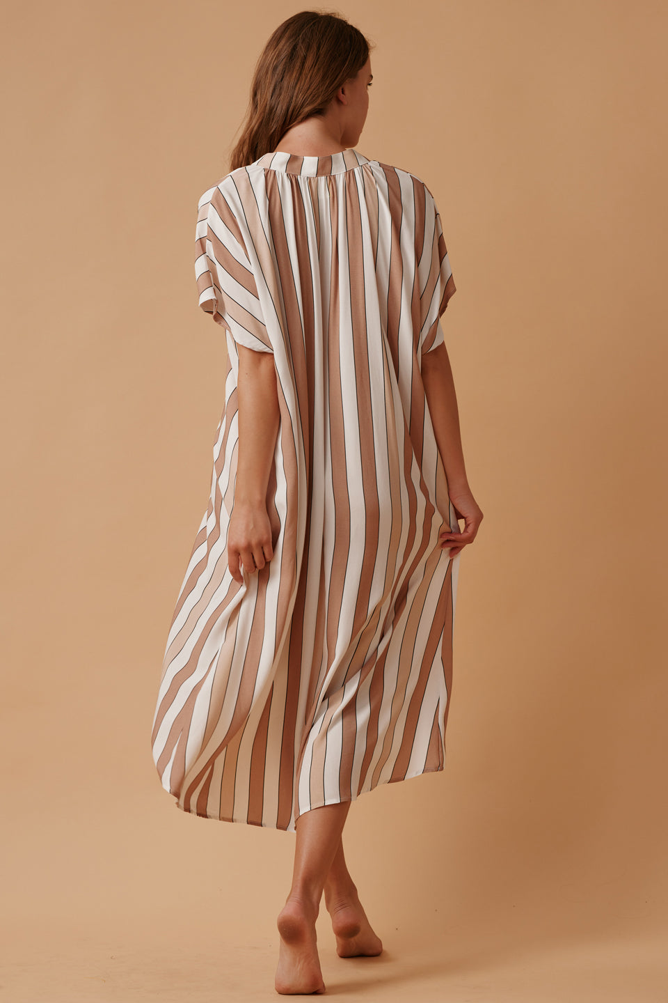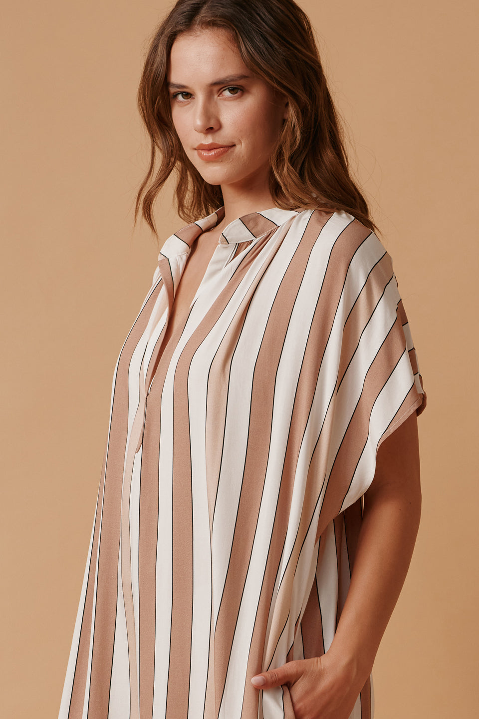 Our best selling caftan featuring on-seam pockets, raw edges and V neckline. Short sleeves.